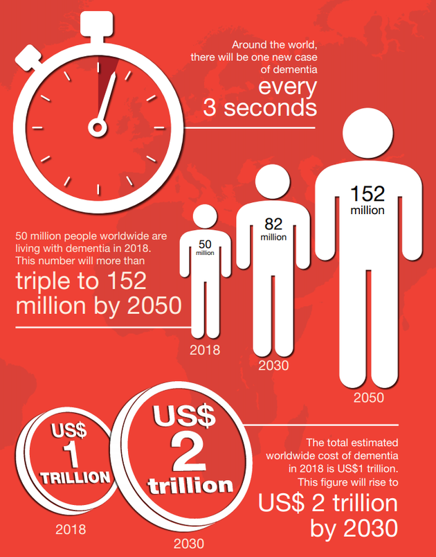 전 세계 치매환자는 2018년 기준 5000만명으로 매 3초마다 신규환자가 발생됐으며 관리 비용은 연간 1조 달러에 육박했다.
