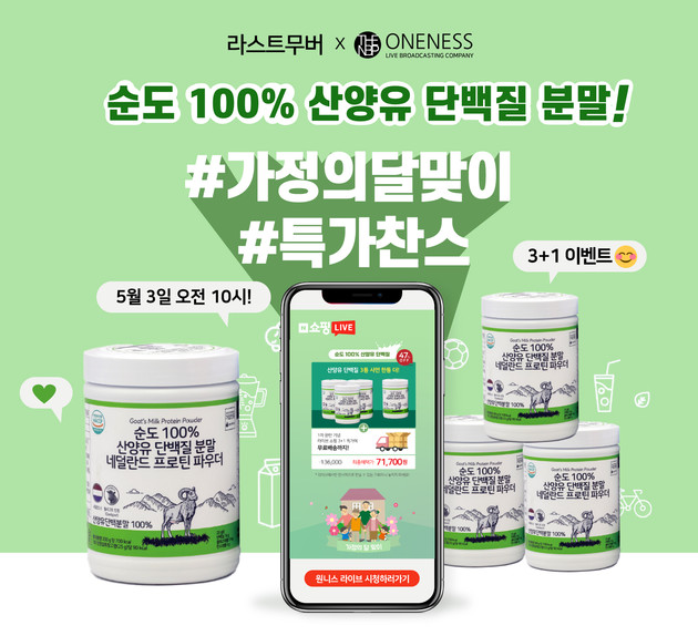 이번 라이브 방송에서는 라스트무버의 단백질 파우더 제품을 소개하며, 방송이 진행되는 동안 최대 30% 할인 혜택도 제공한다.