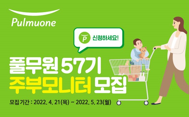 지원은 풀무원 공식 홈페이지(pulmuone.co.kr)나 이프레쉬 홈페이지(https://efresh.pulmuone.co.kr)에서 지원서 양식을 다운로드한 후, 주부모니터 지원서와 개인정보수집동의서를 작성 및 스캔하여 이메일(research@pulmuone.com)로 제출하면 된다. 모집 기간은 5월 23일까지다.