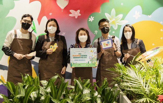 또한, 사노피는 사내 임직원들이 마음을 모아 희귀질환 극복을 응원하는 취지에서 사내 벽화 프로그램을 진행했다. 사내 임직원들과 전문 아트팀 '엽사부'와 협업해 이번 캠페인의 키메시지인 'Care you Rare'라는 문구와 더불어 창조를 뜻하는 태양, 생명을 뜻하는 꽃, 그리고 가족과의 여유로운 휴양지를 연상시키는 야자나무 등을 그래픽 아트로 완성한 희망 메시지 벽화다. 차별성을 상징하는 보랏빛 색감을 바탕으로, 자신의 감정에 솔직하고 당당하며 밝고 활기찬 아이들의 마음을 대변하는 선명한 컬러들이 돋보이는 작품이다.