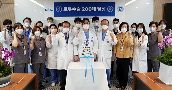 의정부을지대병원(원장 김병식)은 로봇수술 200예를 달성했다고 지난달 31일 밝혔다. 2021년 12월 100례 달성 이후 5개월만이다.