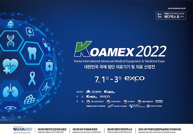 케이메디허브(대구경북첨단의료산업진흥재단, 이사장 양진영)가 올해 처음으로 열리는 국제 첨단의료기기 및 의료산업전(이하 KOAMEX)를 7월 1일부터 3일간 대구 엑스코(EXCO)에서 개최한다고 밝혔다.