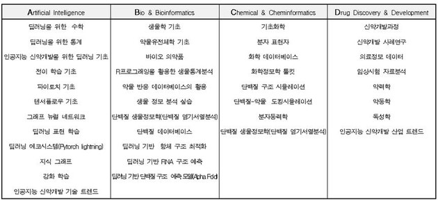 AI센터의 이 같은 '수요자 맞춤형 교육 콘텐츠 개발 및 서비스 제공'은 지난 3월 실시한 현장 수요조사를 통해 기획됐다. 수요조사 결과 신약개발 연구원은 AI를 이해하지 못하고, AI개발자는 신약개발을 이해하지 못해 협업에 많은 어려움을 겪고 있는 것으로 나타났다. 또한 AI와 신약개발을 아우르는 융합형 인재가 크게 부족하고 이를 체계화한 교육 과정도 찾기 힘든 것으로 확인됐다.