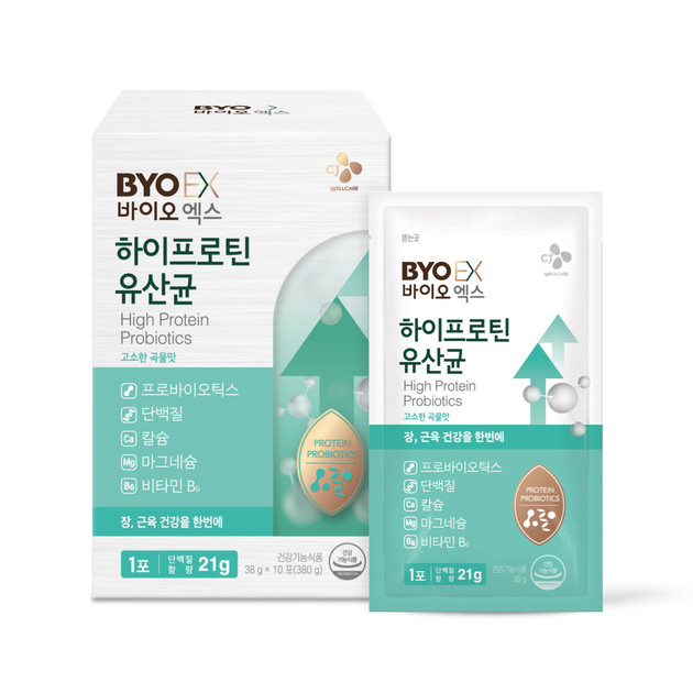 CJ웰케어는 최근 간편하게 단백질을 섭취하고자 하는 소비 트렌드를 반영해 'CJ BYO 하이프로틴 유산균'을 개발했다. 프리미엄 단백질은 식물성 단백질과 동물성 단백질을 1:1 비율로 배합해 소화가 편하도록 만들었다. 류신, 라이신, 메티오닌 등 9가지 필수 아미노산 등으로 구성돼 있으며, 식약처 일일섭취 권장 기준의 175%에 달하는 21g의 단백질이 들어있다.