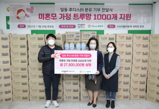 일동후디스가 미혼모 지원센터에 트루맘 분유 1000개를 기부했다고 밝혔다.
