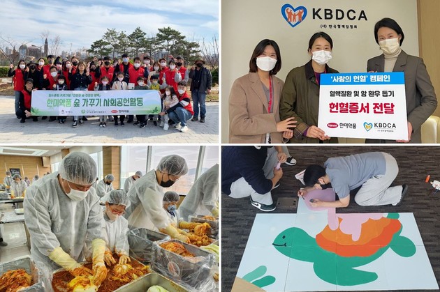 한미약품 임직원들은 지난 한해 동안 ▲지역사회 나눔을 위한 '사랑의 김장' 행사 ▲탄소중립을 위한 '숲 가꾸기' ▲지역사회 환경개선을 위한 '비대면 벽화봉사' ▲환경 팝업북 제작 ▲시각장애인을 위한 전자도서 제작 ▲독거노인을 위한 한과 만들기 ▲다문화가정 지원 ▲주 5일 동안 매일 9988보 걷기 건강 캠페인 등 다채로운 자원봉사에 참가했다.