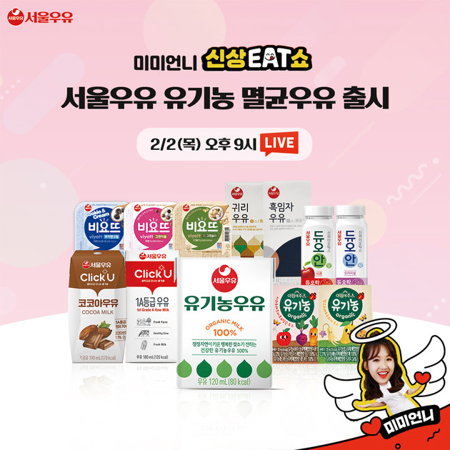 이번 네이버 쇼핑 라이브 미미언니의 '신상EAT쇼' 방송에서는 서울우유 유기농 멸균우유 신상품 소개 외 온라인 전용 브랜드 '클릭유' 우유 및 달고나, 귀리, 흑임자 등 인기 가공유, 유제품들을 한 자리에서 만나볼 수 있다.
