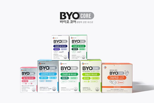 CJ웰케어는 기존 '바이오(BYO)' 유산균의 브랜드명을 '바이오코어(BYOCORE)'로 변경하고 고효능 신제품을 선보인다고 2일 밝혔다. 보다 효과 좋은 유산균을 선호하는 소비자 눈높이에 맞춰 고함량·고기능 제품 중심의 프리미엄 유산균 브랜드로서 9000억원 규모의 국내 유산균 시장을 선도하겠다는 계획이다.