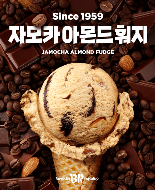 '자모카 아몬드 훠지'는 깊고 풍부한 자모카 커피 아이스크림에 달콤한 초콜릿 훠지 시럽과 바삭한 식감의 고소한 아몬드를 더해 완벽한 조화를 이루는 플레이버다. 1959년 출시된 이후, 미국을 포함한 전 세계 배스킨라빈스에서 대표적 '커피' 아이스크림으로 꼽히고 있다.