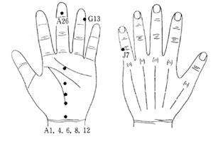 타액이 부족하면 음식의 맛을 모를뿐더러 음식에 있는 독을 제거시켜 주지도 못하기 때문에 소화기 질병이 올 우려가 상당히 높다. 타액은 우리 인체 내에서 소염작용도 아울러 하고 있기 때문에 약간의 위염증세도 쉽게 시술되는 것이다. 또 타액은 펩신이라는 소화효소작용을 하기 때문에 소화기병을 예방ㆍ시술하려면 타액분비를 많이 시켜줘야 한다. 그러기 위해서는 서금요법(서암뜸)으로 G13, J7, A26+기본방을 떠주면 아주 좋은 효과를 볼 것이다. 대개 소화기병이 있는 사람은 침이 마르고 입술주위가 항상 말라 있는 것을 볼 수 있다. 이럴 때는 위의 처방을 반드시 해주면 되는데, 한 손만 하지 말고 좌우수를 함께 뜨는 것이 휠씬 효과적이다. |