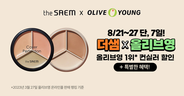 이번 프로모션에서는 '월드 클래스 컨실러'로 불리며 제품력을 인정받은 '커버 퍼펙션' 라인을 최대 25% 할인 판매한다. 특히 21일에는 올리브영 온라인몰에서 진행하는 '오늘의 특가(오특)'에 참여해 '커버 퍼펙션 트리플 팟 컨실러'를 25% 할인 판매한다.