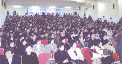 부산 적십자회관의 대ㆍ중ㆍ소강당에는 많은 사람들이 참석해 자리가 없어 서거나 바닥에 앉아 연수교육을 받는 등 큰 인기를 모았다. 오전에는 유태우 회장의 특강과 박규현 박사의 축사, 한나라당 전 원내대표였던 김형오 의원이 참석해 축사까지 이어져 성황을 이뤘다. 또한 이 자리에서 수지침사법 건의서를 직접 전달했다. 이번 수지침사의 연수교육은 중앙회에서 여름과 가을철에 실시했던 연수교육에 불참했던 영남지역 수지침사들에 대한 교육이었다. 대강당 1층에서는 제1차년도, 중강당에서는 제2차년도, 소강당에서는 제3차년도 교육이 실시됐다. 또한 이날은 전국의 지회장과 학술위원, 수지침사 자원봉사원들이 많이 참석해 더욱 성황을 이뤘다. 제1차년도 강의는 이상운 학술위원, 제2차년도는 박정숙 학술위원, 제3차년도는 김기종 학술위원이 담당했다. |