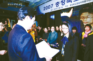 지난 3일 충북 자원봉사자대회에서 충북도지사(정우택)의 표창장과 감사패를 받았다. 박종우 수지침사는 행정자치부장관상을 받는 등 그동안 서금요법 봉사활동을 전개한 공로를 인정받았다. 최원형 수지침사는 “표창장을 받아 무척 기쁘다. 새해에는 더욱 노력 하겠다”며 “모든 봉사단원들과 기쁨을 나누면서 서금요법 보급과 자원봉사활동에 더욱 매진 하겠다”고 소감을 밝혔다. |
