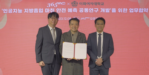 지방흡입 비만 특화 의료기관 365mc는 지난 8일 서울365mc병원 오렌지홀에서 이화여자대학교 강윤철, 김진우 교수 연구팀과 '인공지능 지방흡입 마취 안전 예측' 공동연구 개발을 위한 업무협약을 체결했다고 15일 밝혔다.