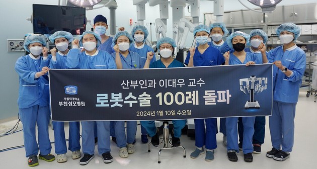 부천성모병원 산부인과 이대우 교수가 지난 10일 로봇수술 단독 100례를 돌파했다.