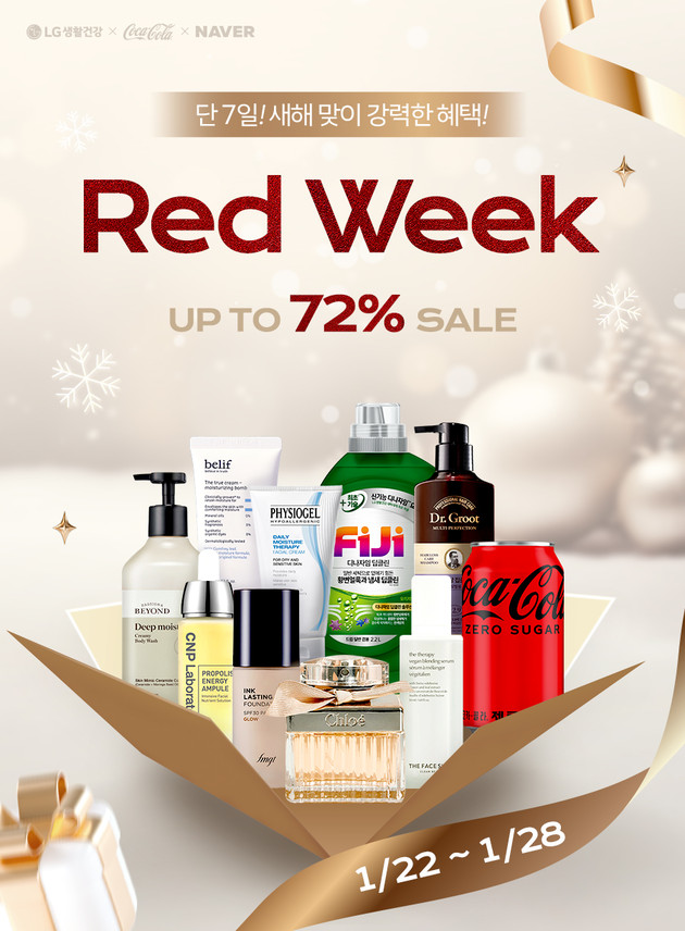 회사 측에 따르면 이번 레드 위크는 네이버 LG생활건강샵, CNP, 코카-콜라 등 네이버쇼핑 내 LG생활건강 브랜드 스토어에서 진행된다. 2024년 첫 레드위크로 LG생활건강 대표 브랜드가 참가해 고객에게 풍성한 할인 혜택과 차별적 고객가치를 제공할 계획이다.