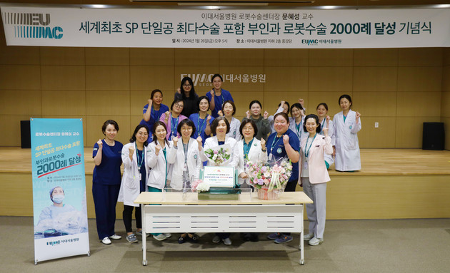 이대서울병원 로봇수술센터 문혜성 센터장(산부인과)이 로봇수술 2000례를 달성하고 지난 26일 이대서울병원 지하2층 중강당에서 기념식을 개최했다.