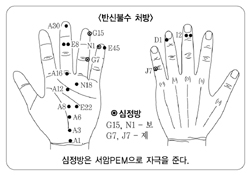 2007년 7월 30일 양산종합사회복지관에서 수지침 자원봉사를 하고 있을 때, 외손자의 언어치료를 위해 찾아온 유모씨(남·62)가 교통사고로 오랜 반신불수 상태의 고통을 호소하며, 수지침 시술로 호전될 수 있는지의 가능성에 대해 질문을 했다. 워낙 오래된 병이라 치유하는데 시간이 걸리겠지만 분명히 노력한 만큼의 서금요법의 효과는 분명히 있다고 설명하고 시술하게 된 임상사례이다. 2.환자상태 개인 사업을 하고 있던 유모 회원은 지금부터 21년 전(1986년 6월)에 빗길에 타고 가던 트럭이 전복되면서 경추 5~7번 사이의 충격으로 중추신경이 마비된 환자로 장애1급 판정을 받았다. 그동안 양·한방을 통해 치료한 결과 현재는 장애2급자로 더 이상의 호전없이 평생 동안 보호자가 환자를 돌보아 줘야 하는 상태였다(매달 1회씩 보건소에서 재택진료 체크 중이라 함). 유모 회원의 몸 상태는 좌측 반신불수였고, 우측 뒷목에 흉터가 있었으며 유난히 우측 눈썹 위의 이마 부분에서만 땀이 방울방울 맺히면서 계속적으로 흘러내리고 있었다. 3.진료판단 교통사고의 경우 대개 병원에서는 눈에 보이는 외상치료에 중점을 둬 치료 하다보니 환자가 완치가 돼 퇴원하더라도 실제적으로는 시간이 지남에 따라 나타나는 교통사고 휴유증에 의한 통증으로 인해 환자들이 매우 고통스러워하는 경향이 많이 발생하고 있다고 본다. 이는 교통사고로 인한 신체 내부조직의 직접적인 손상과 사고의 영향으로 인한 중요 부위의 미세한 손상을 간과하는데 그 원인이 있다고 보여진다. 그러한 관점에서 문진을 통해 유모 회원의 교통사고 후 오랜 치료기간의 과정을 분석해 보았다. 교통사고로 인한 신체 부위와 몸 전체를 세심한 진단(시진)을 통해 우측의 뒷목 흉터자국을 확인했다. 또한, 신체 좌측의 반신불수 원인을 찾고자 맥을 짚어보면서 이는 결론적으로 교통사고로 인한 우측 뒷목의 충격(사고 당시 트럭에 실려 있던 물건이 우측 뒷목을 강타)과 우측 뇌의 혈류에 이상이 있는 것으로 판단하고 단계적 시술에 임하게 됐다. 4.시술내용 우선 환자의 반신불수 상태가 오래 지속되었던 점을 감안해 환자의 기혈소통을 위해 양손에 서금8혈을 다스렸다. 우측 뒷목 흉터의 상응점인 우수 중지 우측과 좌수 중지 우측에 B2~B24, I1~3, M4~6을, 우측 이마의 상응점인 M1ㆍ2을 시술했으며, 상병하취요법으로 좌수 5지 N1 부근에서 압통점을 찾아 다침을 시술했다. 운기체질은 右 水金(不), 左 水金(太)이고, 음양맥진은 右 촌구3성평맥(비실), 左 촌구2성평맥(신실)으로서 기본방+독기맥(B19~27, B14·7·2·1)+E8, I2+좌측[(신승방+방광정방)과 (폐승방+대장정방), (소장승방+심정방)]을 번갈아 시술+우측[(비승방 + 위정방), (심승방+소장정방), (방광승방+심정방), (담승방+간정방)]을 번갈아 시술하면서 공통적으로는 해당되는 기모혈과 기유혈, 요혈을 추가했다. 마지막에는 양손 5지 N1과 양손 4지 K15, 양손 I33과 E38, 중지의 좌수 좌측과 우수 좌측의 M3·4·5·10·11에 1호 금T봉을 시술했다(주 2회). 서금요법(특상 황토서암뜸)은 오전·오후 하루 2회로 400개 정도를 임기맥과 독기맥에, 그리고 좌수 4·5지와 우수 1·2지에 앞뒤로 뜸을 촘촘히 뜨게 했다. 심장과 신장을 보하는 서암식(예왕식과 지왕식)을 2:2 비율로 하루에 세번 먹게 했다.(경제적 사정으로 처음 한통만 먹음) 음양석 팔찌는 왼손에 착용하게 했으며, 발지압판과 지압봉 운동을 계속하도록 처방했다. 5.시술경과(약 4개월) 2007년 7월 30일부터 주 2회 상담 중에 2회차 때부터 좌측 다리에 힘이 생기면서 움직임이 시작됐다. 지금은 약간 어색하긴 해도 걸음을 걸을 수가 있으며, 반듯하게 서있을 수 있다는 것과 앉았다 일어설 때 혼자 힘으로 할 수 있게 됐다. 또 두발을 동시에 들어올려 줄넘기 하는 모습을 재현하기도 했다. 팔을 위로 들어올리며 힘없던 손과 손가락에 힘이 생겨 물건을 잡을 수 있지만, 아직은 완벽하게 주먹을 꽉 쥐지는 못하는 상태다. 그리고 소변불리 현상이 해소돼 한번에 많은 양의 소변을 보게 됐으며 우측 종아리 외측부분의 냉증으로 인한 고통증상도 완전히 사라졌다고 한다. 6.향후 시술계획 우리는 어떠한 사고로 인해서 다만 몇 개월이라도 인체의 특정부분에 깁스를 했을 때, 다친 그 부분 외에 깁스로 인해 잠깐 동안 움직이지 못했던 신체의 일부는 거의 굳어진 상태가 돼 깁스를 풀었을 때 거의 움직이지 못하고 정상적으로 회복하는 데는 시간과 노력(재활치료)이 필요하다. 하물며 21년이라는 긴 세월동안 전혀 움직이지 못하던 팔과 다리가 정상으로 돌아오는 데는 적잖은 시간이 요구될 것으로 안다. 이제 불과 4개월 남짓(4회차 시술부터 걷기 시작) 됐지만 환자본인은 ‘꿈’같다고 말하며 지금 이 상태에서 더 이상 진전이 없어도 이것으로 만족하며 ‘서금요법의 위대함’에 감사하다고 한다. 그렇지만 앞으로의 시술 계획은 6개월을 단위로 제1단계(2008년 1월말)와 제2단계(2008년 7월말), 제3단계(2009년 1월말)까지 계획하고 있다. 이렇게 단계별로 나누고자 함은 그 단계마다 치료법을 달리해 회복상태를 살펴보고자 함이다. 그리고 환자의 호전 상태를 정밀하게 분석
