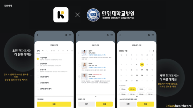 또한, 환자들이 번거롭고 어려웠던 병원업무를 보다 편리하게 이용할 수 있도록 증상 기반 진료과 추천, 검사 안내, 수납 안내, 진료비 및 주차비 결재, 제증명서 발급, 카카오맵 연동 병원 위치정보 안내 등 다양한 기능을 추가할 예정이다.