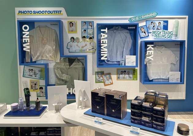 샤이니 팬덤을 상징하는 민트색으로 꾸며진 이번 팝업스토어는 닥터지의 브랜드 스토리와 함께 대표 제품인 각·보·자(각질, 보습, 자외선) 라인을 소개하는 공간으로 꾸며졌다.