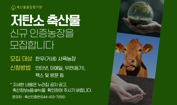 한편 축산물품질평가원은 4월 16일까지 2024년도 저탄소 축산물 신규 인증 농장을 모집하고 있다. 참여를 희망하는 한우농장은 별도 누리집(축산정보e음) 등으로 신청할 수 있으며, 자세한 내용은 축산물품질평가원 대표 누리집 공지사항을 참고하면 된다. 인증 농장은 배출량 산정 컨설팅 및 현장 심사, 전문가 심의 등을 거쳐 최종 선정될 예정이다.