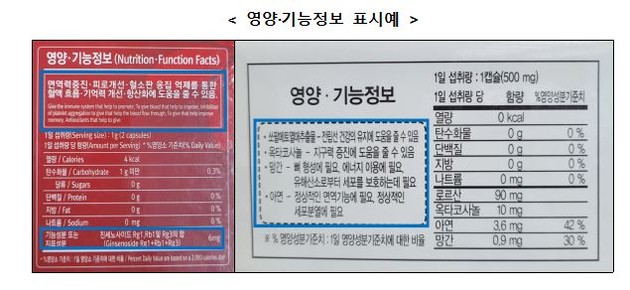 또 제품의 '영양·기능정보' 표시란에 있는 기능성 원료 및 기능성, 섭취량, 섭취 방법, 섭취시 주의사항 등을 꼼꼼하게 살펴야 한다. 건강기능식품은 식약처에서 인정한 기능성만을 표시할 수 있고 제품별로 기능성이 다르므로 구매 전에 개인의 건강 상태를 고려해 구매 목적에 맞는 제품인지 확인해야 한다.