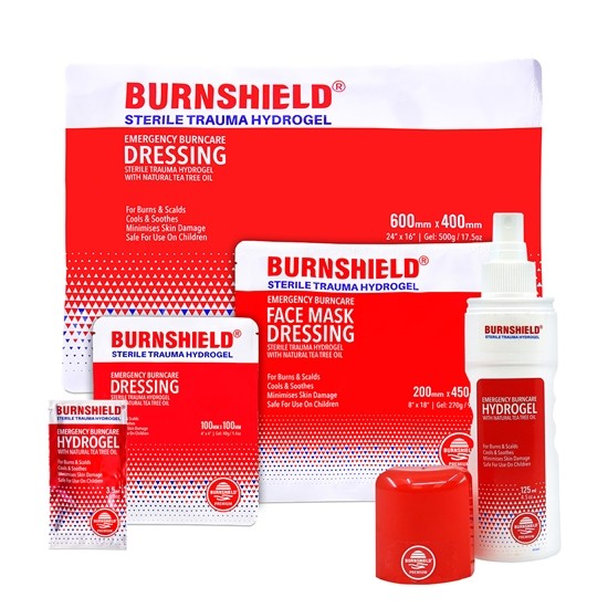 번실드는 1990년 첫 출시돼 2005년 한국 식약처 화상용 응급처치제(창상피복제) 허가를 받아 국내에 공식 출시된 제품이다. 특수 젤이 함유된 창상피복제로, 화상 부위의 열을 빠르게 낮추고 통증을 완화하는 동시에 멸균 처리된 포장으로 감염 위험을 최소화한다.