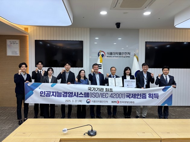 식약처는 ISO/IEC 42001 인증을 위해 '24년부터 인공지능경영시스템을 체계적으로 구축해왔으며, 올해 3월 한국경영인증원의 서류심사와 현장심사 결과 모든 요구사항이 국제기준에 부합함을 확인했다.