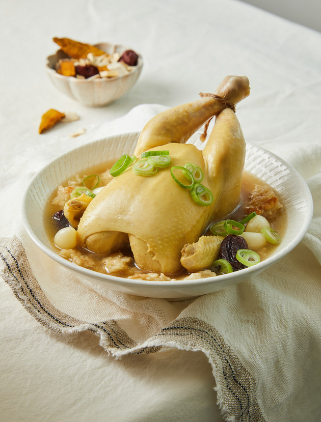 상황버섯 우린 물에 닭과 삼계탕용 약재, 마늘, 대추를 넣고 끓이면 부드러운 육질에 고단백, 탄수화물 식단 '상황버섯 누룽지 삼계탕'이 완성된다.