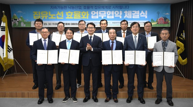낙농진흥회(회장 김선영)는 6월 23일 낙농진흥회 대회의실(세종시)에서 집유노선 효율화 추진을 위해 11개 낙농관련 기관과 업무협약(MOU)을 체결했다.