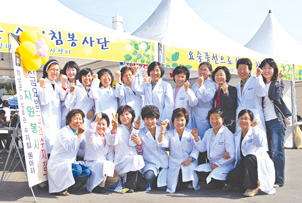 오전부터 많은 사람들이 다양한 질환을 가지고 부스를 찾아 서금요법을 체험했다. 이날 각 시ㆍ군에서 다양한 봉사 부스가 설치됐지만 유독 서금요법 부스에만 많은 사람들이 몰려 부산 KNN방송의 ‘싱싱가요특급’프로에서 “왜 이렇게 사람들이 많이 몰리며, 과연 어떤 효과가 있는가”에 대해 신인숙(대구 달서지회 053-653-5144) 지회장의 인터뷰도 이뤄졌다. 또 경남일보ㆍ울산광역일보 등 여러 지역신문에서도 ‘서금요법 봉사의 인기’라는 제목으로 소개되기도 했으며 경상남도 자원봉사 관계자는 2011년 자원봉사에도 수지침봉사를 해달라고 요청하기도 했다. 한편 신인숙 지회장은 지난 1월 18일 창녕군수로부터 우수자원봉사자로 표창패를 받았다. 이번 표창패는 지난 2000년도에 이어 두 번째로 신 지회장은 창녕군에서 지난 98년부터 창녕군내 오지마을과 노인복지회관, 노인요양병원 등지에서 수지침사 자격증을 취득한 ‘손사랑회’ 회원들과 함께 꾸준하게 시술봉사를 전개하고 있다. 또 지난 96년부터 지금까지 창녕군 여성회관에서 서금요법 강의 해 많은 수지침사를 배출했고, ‘손사랑회’ 봉사단원들은 모두가 자격증을 가진 실력이 인정된 봉사요원들로 여러 곳에서 활발한 봉사를 하고 있다. |