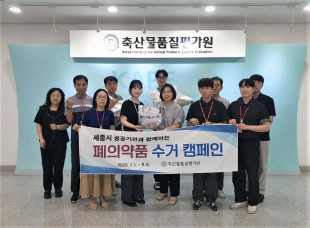축산물품질평가원(원장 박병홍)은 지난 6일 '세종시 공공기관과 함께하는 친환경 실천 폐의약품 수거 행사'에서 약 10kg의 폐의약품을 수거했다고 밝혔다.
