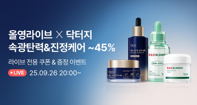 더모코스메틱 브랜드 닥터지가 환절기 피부 고민 해결을 위해 올영라이브에 참여해 대표 라인으로 구성된 특별 기획세트를 최대 45% 할인가로 선보인다고 밝혔다.