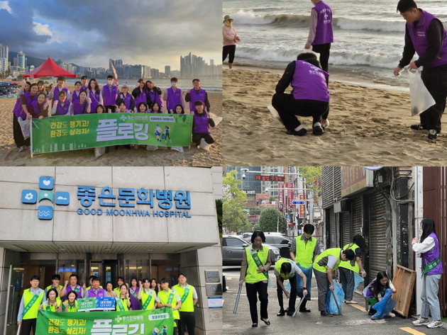 좋은문화병원과 좋은강안병원은 17일 각각 병원 자원봉사대와 청결위원회 주관으로 병원 인근 범일동 지역과 광안리 해수욕장 일대에서 환경정화 활동을 펼쳤다. 자발적으로 참여한 직원들은 주변 거리를 정리하고 쓰레기를 수거하며 지역 환경 개선에 동참했다.