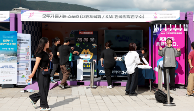 지난 17일 부산아시아드경기장에서 개최된 대한체육회 주최 '제106회 전국체육대회' 개회식에서 KMI는 홍보부스를 마련하고 관람객을 대상으로 ▲기념품 증정 ▲SNS 팔로우 이벤트 ▲순발력 게임 ▲페이스페인팅 ▲공익 캠페인 홍보 등을 진행하며 생활체육의 중요성을 알렸다.