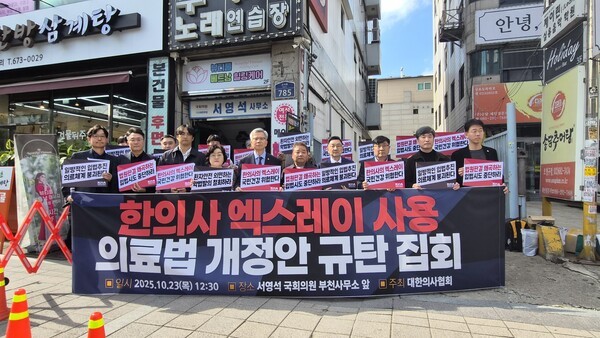대한의사협회(회장 김택우)는 대한영상의학회, 의협 한방대책특별위원회, 부천시의사회 임원 20여명이 모인 가운데 서영석 더불어민주당 의원의 부천 사무실 앞에서 규탄 집회를 개최했다.