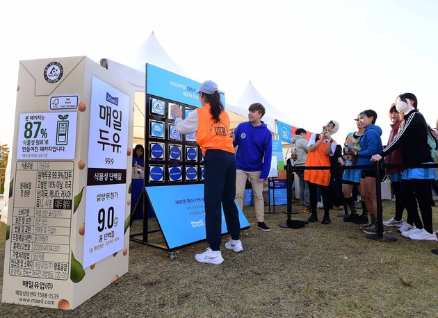 부스를 방문한 행사 참여자들에게는 패키지를 직접 경험할 수 있도록 종이 기반 보호층 멸균팩을 적용한 '매일두유 99.9' 제품을 증정했으며, 나아가 자원순환에도 자발적으로 참여할 수 있도록 멸균팩 수거함을 현장에 설치하기도 했다. 다 마신 제품을 수거함을 통해 올바르게 반납한 시민들에게는 리워드로 페스티벌에서도 유용하게 활용할 수 있는 스포츠타올이 지급됐다.