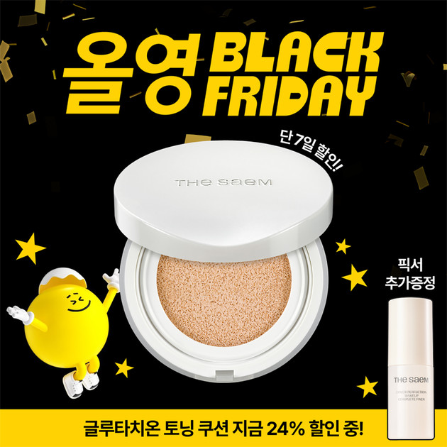 더샘(대표 임진서)이 오는 7일까지 진행되는 올영 블랙프라이데이에 참여한다고 밝혔다. 이번 올영 블랙프라이데이 기간에는 더샘의 베스트셀러인 '스킨 퍼펙션 글루타치온 토닝 쿠션', '글램 퍼펙션 베이크드 하이라이터', '커버 퍼펙션 컨실러 팔레트'를 24% 할인율로 만나볼 수 있다.