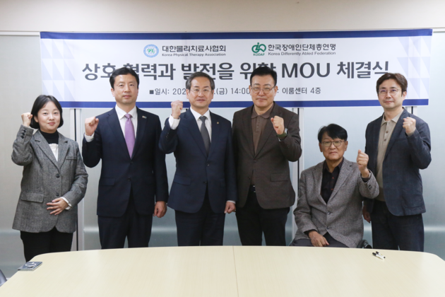사단법인 한국장애인단체총연맹(상임대표 채태기, 이하 장총)와 사단법인 대한물리치료사협회(회장 양대림, 이하 물치협)는 지난 7일 서울 영등포구 소재 이룸센터 4층 한국장애인단체총연맹 사무실에서 업무협약을 체결했다.