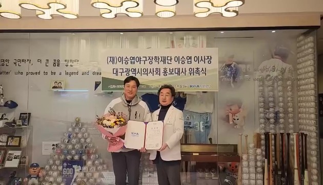이승엽 이사장은 "대구시민들의 건강을 위해 노력해 주시는 대구광역시의사회 홍보대사로 위촉돼 영광이다. 앞으로 대구 의료계를 대변할 수 있도록 더 책임감을 가지고 홍보활동에 임할 것"이라고 밝혔다.