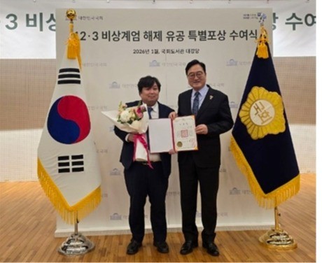 이민우 교수는 국회 공적 심사위원회를 거친 것으로 당시 국회의장 보건정책비서관으로서 12·3 비상계엄 조기 해제에 기여한 공로를 인정받아 수상의 영광을 안았다.