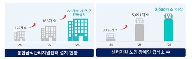 영양사 없이 운영되는 50인 미만 경로당, 노인요양시설, 장애인거주시설 등의 급식 안전과 영양 관리를 위해, 소규모 노인·장애인 사회복지시설을 관리하는 '통합급식관리지원센터'(이하 '센터') 62개소를 추가로 설치한다.