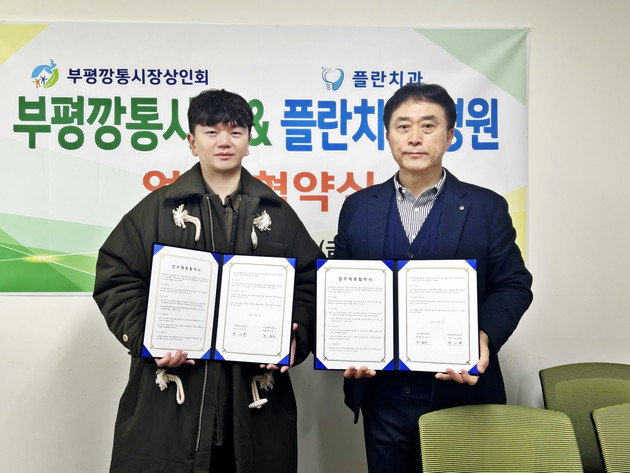 이날 협약식은 부평깡통시장상인회 사무실에서 진행됐으며, 부산 플란치과병원 하정식 대표원장과 부평깡통시장 상인회 박이현 회장을 비롯한 양 기관 주요 관계자들이 참석해 전통시장 활성화와 상인 복지 향상을 위해 손을 맞잡았다.