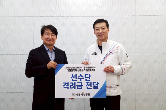 바른세상병원은 서 병원장이 지난 16일 충북 진천 국가대표선수촌을 방문해 '2026 밀라노·코르티나 동계올림픽'에 출전하는 대한민국 선수단에 격려금을 전달했다고 밝혔다.