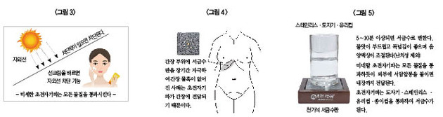 참고로 서금수판 위에 스테인리스나 도자기, 유리컵에 물을 넣어 올려놓으면 맛있는(물맛이 부드럽고 목 넘김이 좋으며 음양맥상이 조절된다) 서금수가 되고, 플라스틱병에 막걸리를 올려놓거나, 도자기 컵에 커피를 넣고 서금수판 위에 올려놓아도 맛과 향에 영향을 미친다. <그림 4, 5>