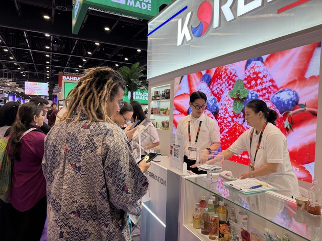 농식품부는 딸기·포도·키위 수출통합조직과 가공식품 수출기업 등 전년 대비 2배 증가한 24개 기업과 함께 한국관을 구성해 라면, 스낵, 소스, 음료, 신선 과일 등 다양한 K-푸드를 선보였다. 한국관을 찾은 바이어들과 수출 상담 등을 통해 중동 내 K-푸드 인기가 지속적으로 확대되고 있음을 확인했으며, △중동 지역에서 기능성 어린이 제품 수요가 증가함에 따라 설탕 무첨가 요거트와 유산균 기반 스낵 △빵 아이스크림 등 다양한 제품에 활용 가능한 저당 말차 스프레드 △K-드라마 및 편의점 문화 확산에 힘입은 과일맛 파우치 음료 등이 인기를 끌어 현장에서 바이어와 업무협약을 체결하는 성과를 거뒀다.