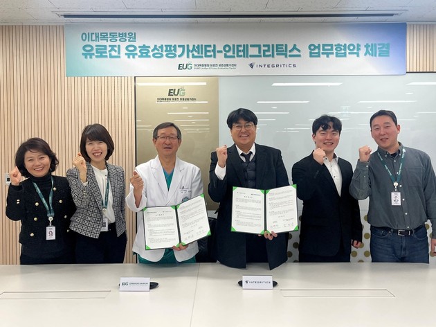 이날 협약식에는 김청수 유로진 유효성평가센터장, 이후정 이화의생명연구부원장, 박성은 유로진 유효성평가센터 사무국장 등 이대목동병원 관계자들과 박병진 인테그리틱스 대표 등 인테그리틱스 관계자들이 참석했다.
