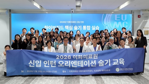 이화여자대학교 의료원(의료원장 유경하)이 지난달 24일부터 26일까지 3일간 이대목동병원 MCC B관 10층 대회의실, 이대서울병원 지하 2층 이화의료아카데미에서 '2026년도 신입 인턴 오리엔테이션(OT)'을 실시했다.