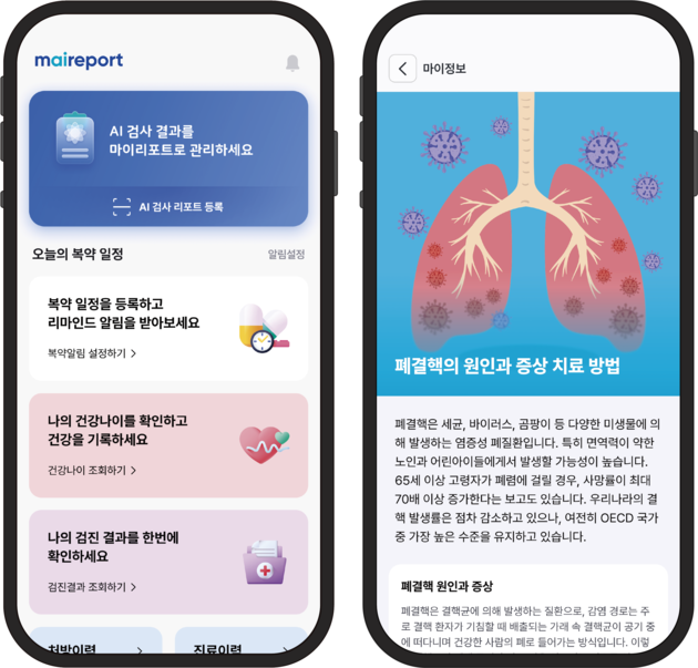 맞춤형 스마트 헬스케어 앱 '마이리포트(maiReport)'도 선보였다. 다양한 AI 검사 결과와 의료 데이터를 개인이 통합 관리할 수 있도록 설계된 서비스다.