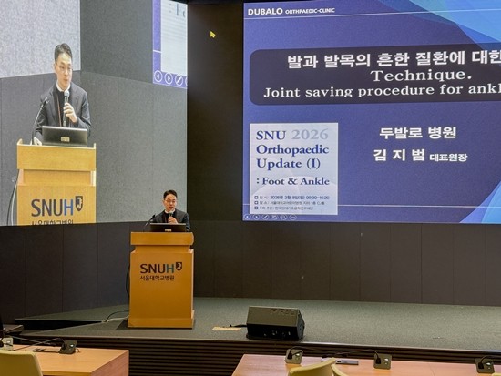 서울대학교 의과대학 정형외과학교실이 주관한 족부·족관절 심포지엄에서 두발로병원 김지범 원장이 발목 관절염 치료에서의 정상적인 관절 부위를 최대한 살려 기능을 회복시키는 임상 경험을 발표했다.